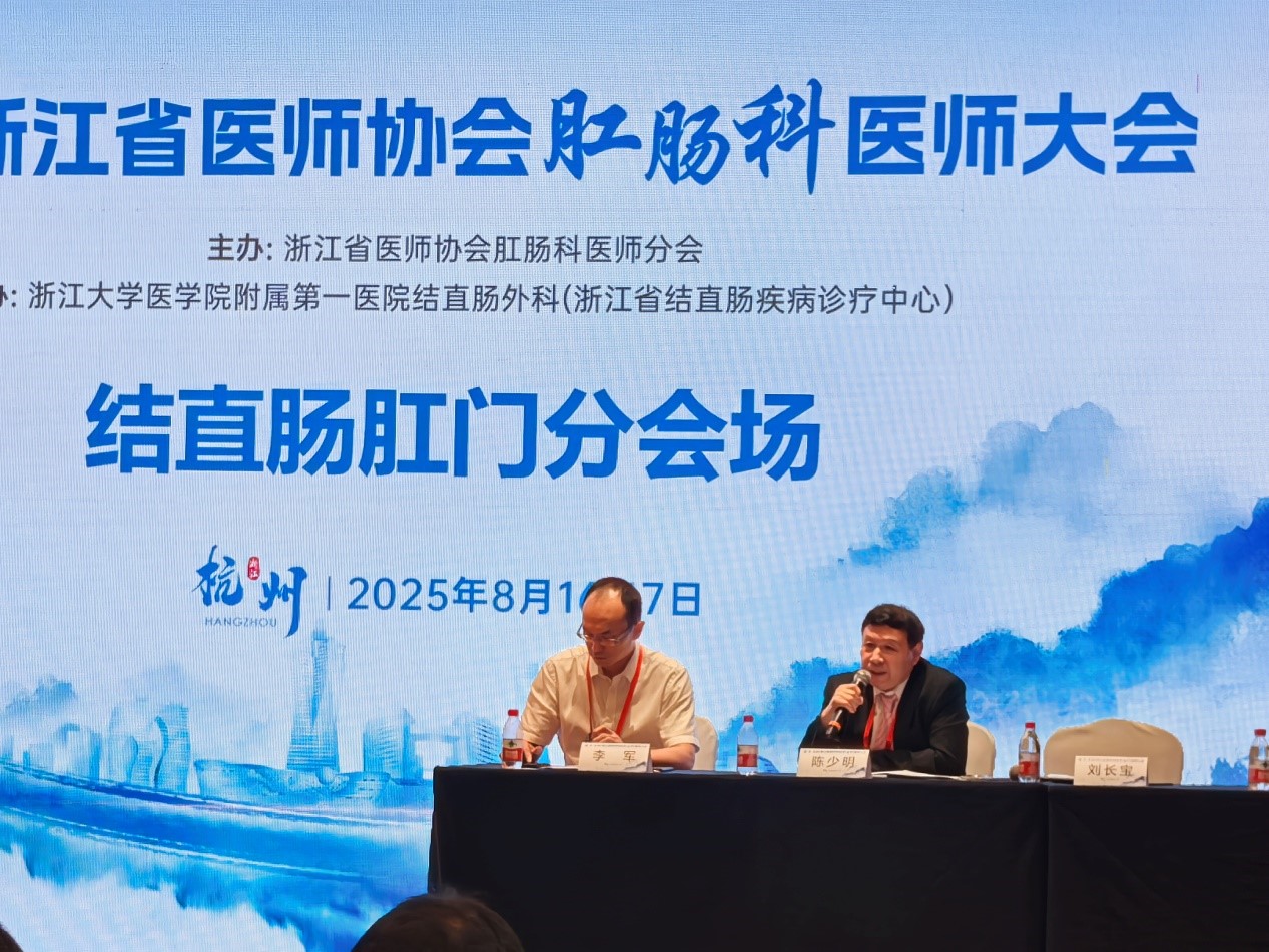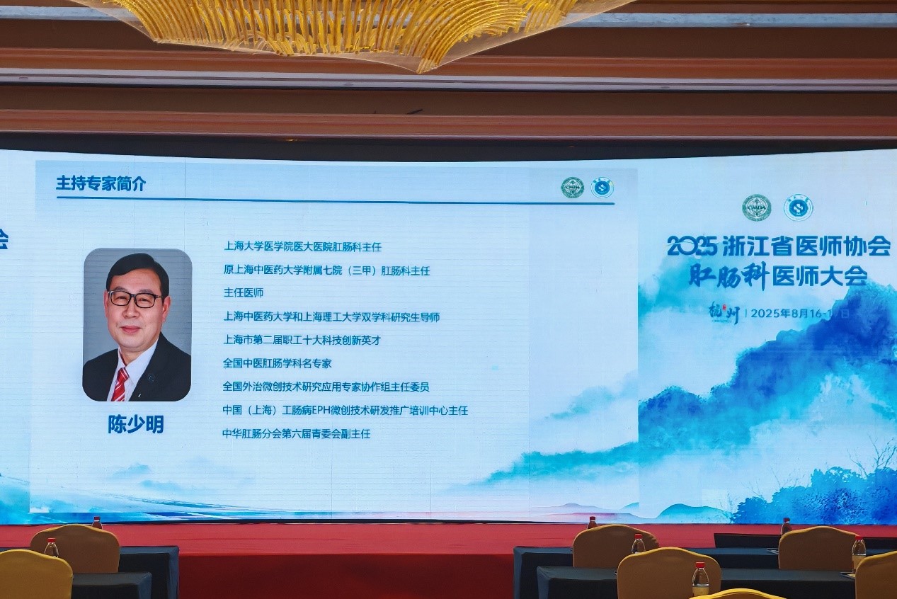 2025年8月17日,由浙江省医师协会肛肠科医师分会主办,浙江大学医学院附属第一医院结直肠外科(浙江省结直肠疾病诊疗中心)承办的肛肠科医师大会在杭州隆重召开。陈少明教授作为结直肠肛门分会场主持人,展现其深耕肛肠病学领域的研究成果,特别是在肛肠病微创技术领域的最新学术进展。